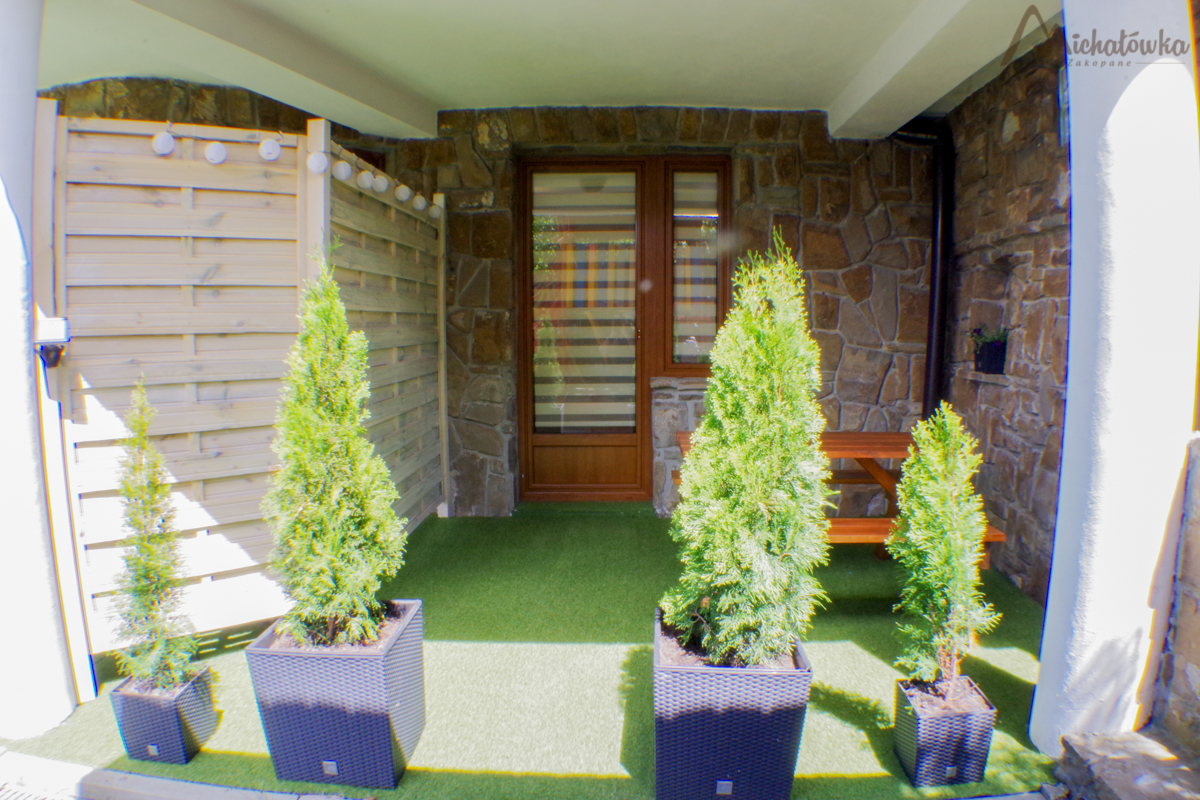 Pokój „Gawra” znajduje się na parterze i posiada taras z wyjściem do ogrodu.