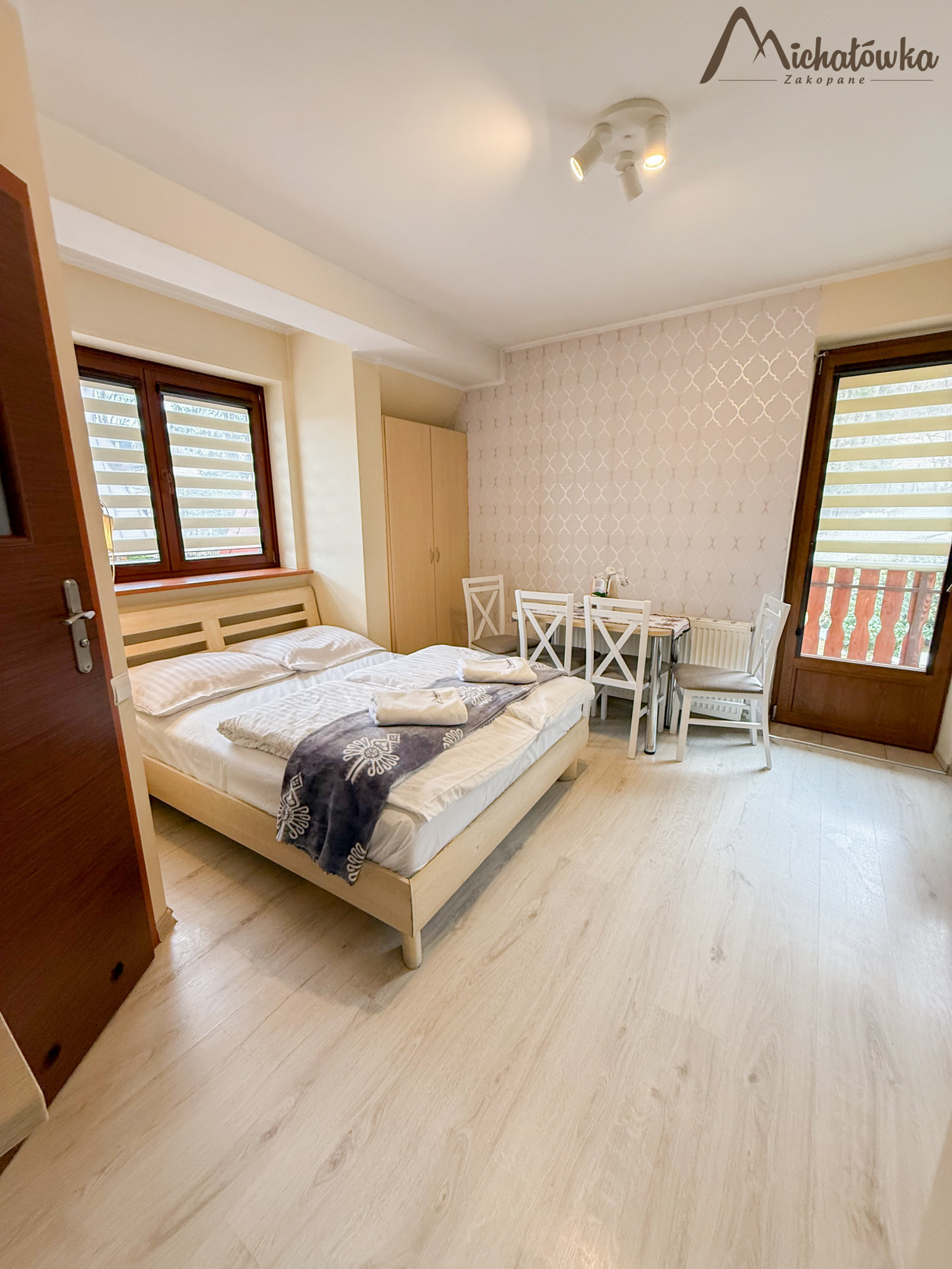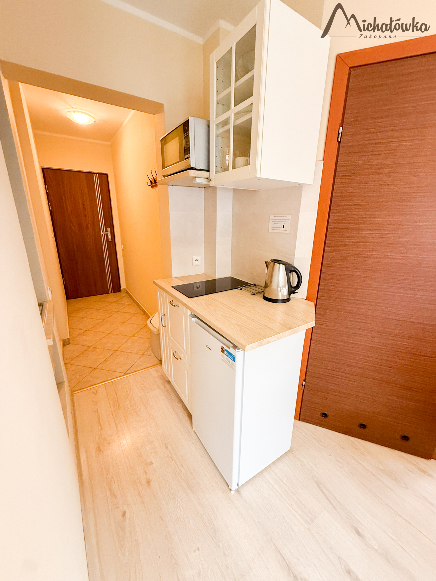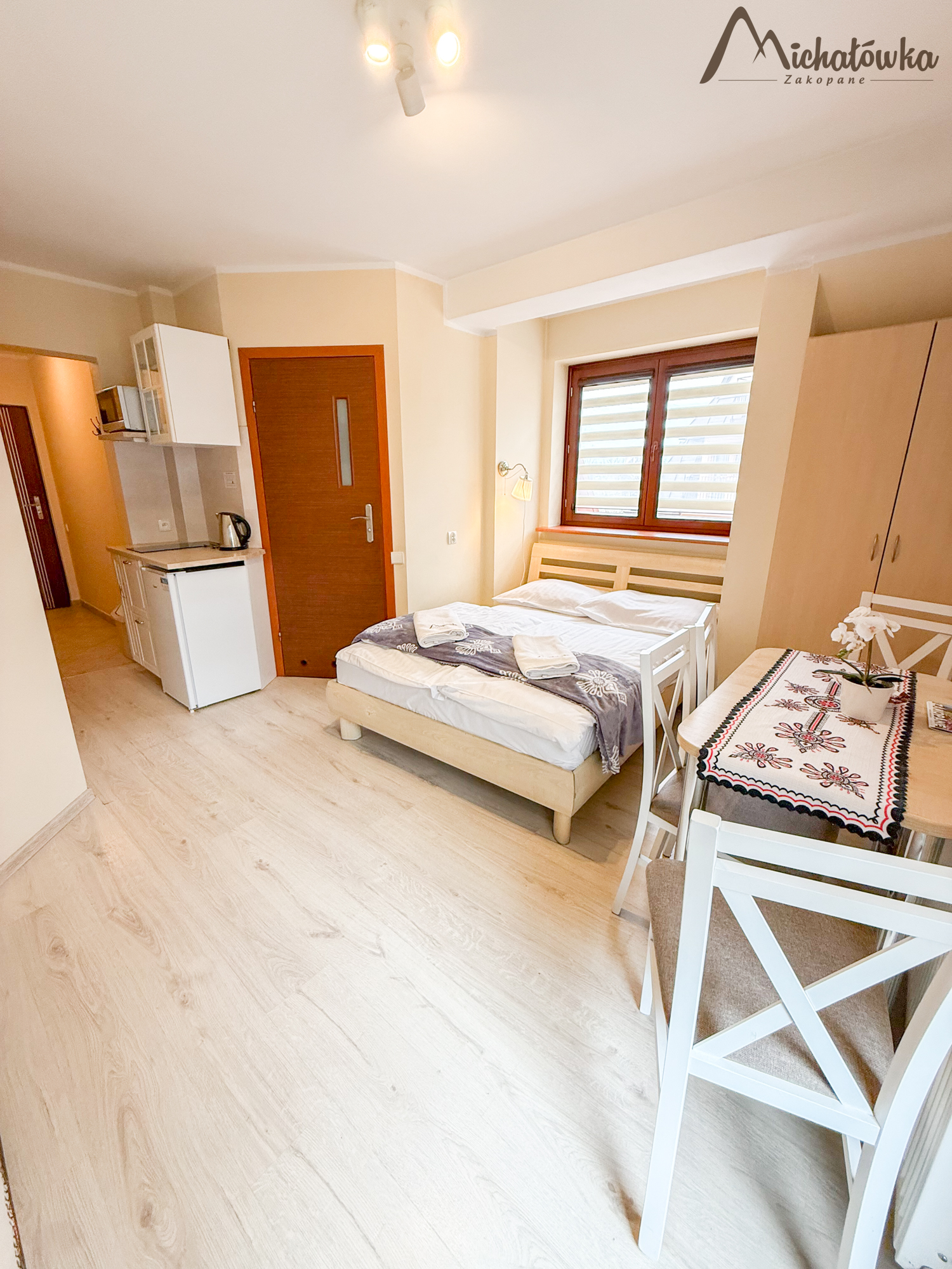 Pokój znajduje się na 2 piętrze. Łazienka jest z wanną (wejście bezpośrednio z pokoju). W pokoju znajduje się łóżko małżeńskie + rozkładane łóżko małżeńskie, TV LCD, aneks kuchenny: lodówka, czajnik, elektryczna płyta indukcyjna, kuchenka mikrofalowa, garnki, patelnia, sztućce, talerze, szklanki itp.